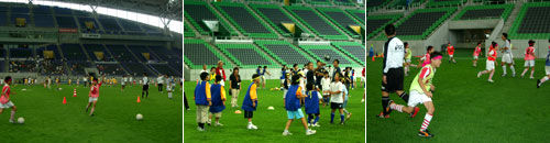 サッカーでは、ヴィッセル神戸のコーチングスタッフが指導した。集合・整列からグループ
